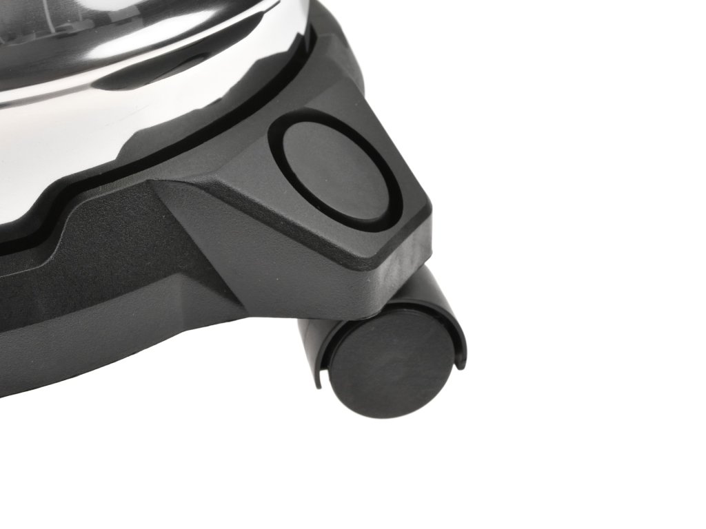 Spremnik zapremnine 20 litara izrađen je od izdržljive nehrđajuće čelika koja osigurava dugotrajnost. Također nudi praktičnu funkciju puhanja, koja olakšava ispuštanje nečistoća iz teško dostupnih mjesta. Četiri okretna kotača jamče jednostavno premještanje usisavača unutar prostora.