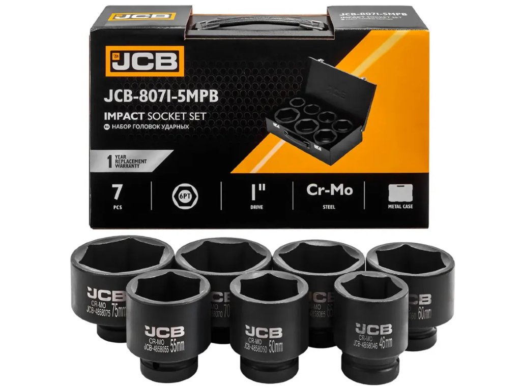 JCB 1" Cr-Mo set udarnih nasadnih ključeva sa 6 krakova, 7 dijelova, 46-75 mm