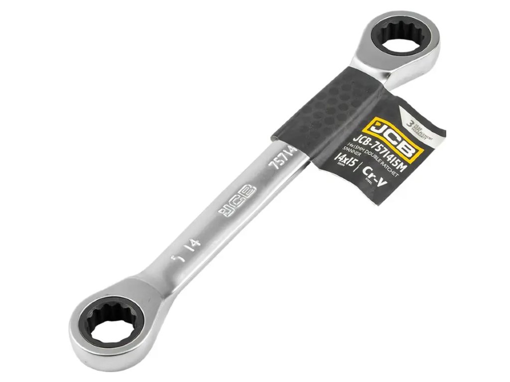 JCB dvostrani okasti ključ s račnom, 14×15 mm, Cr-V, 12-kraki