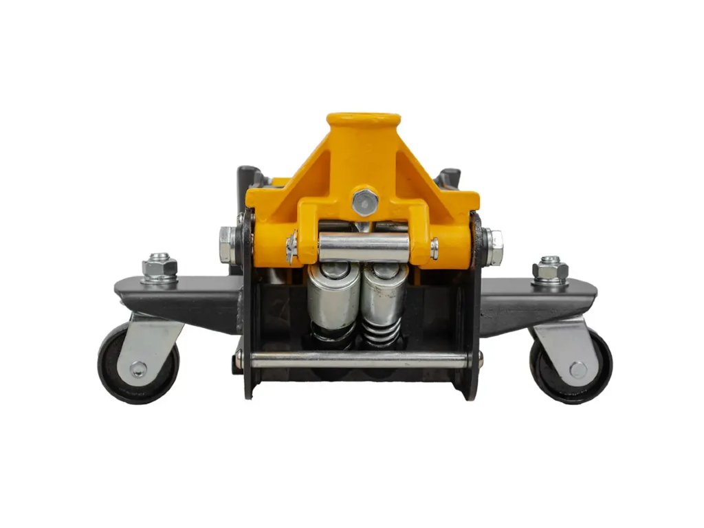 Dizalica ima čelične kotače - dva se okretaju za 360° za jednostavno manevriranje i dva fiksna za stabilnost. Sklopiva ručka od 180° s gumenim rukohvatom osigurava udobnost i potpunu kontrolu tijekom rada.