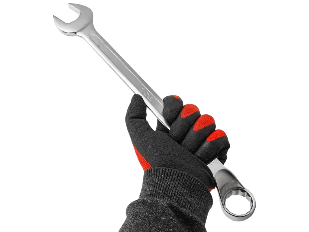 Kombinirani ključ od 27 mm s kutom od 75° je alat dizajniran za rad na teško dostupnim mjestima. Poseban dizajn s dubokim udubljenjem pruža dodatni prostor, omogućujući vam slobodno hvatanje i okretanje pričvršćivača čak i kada obični ključevi ili čegrtaljke zakažu.
