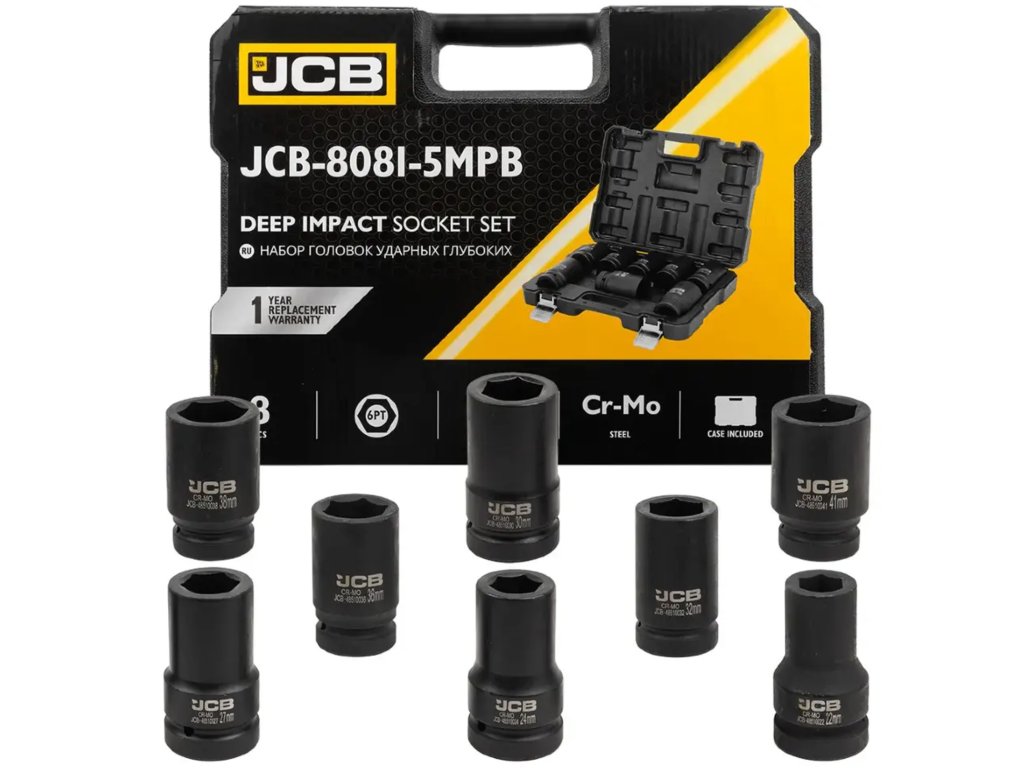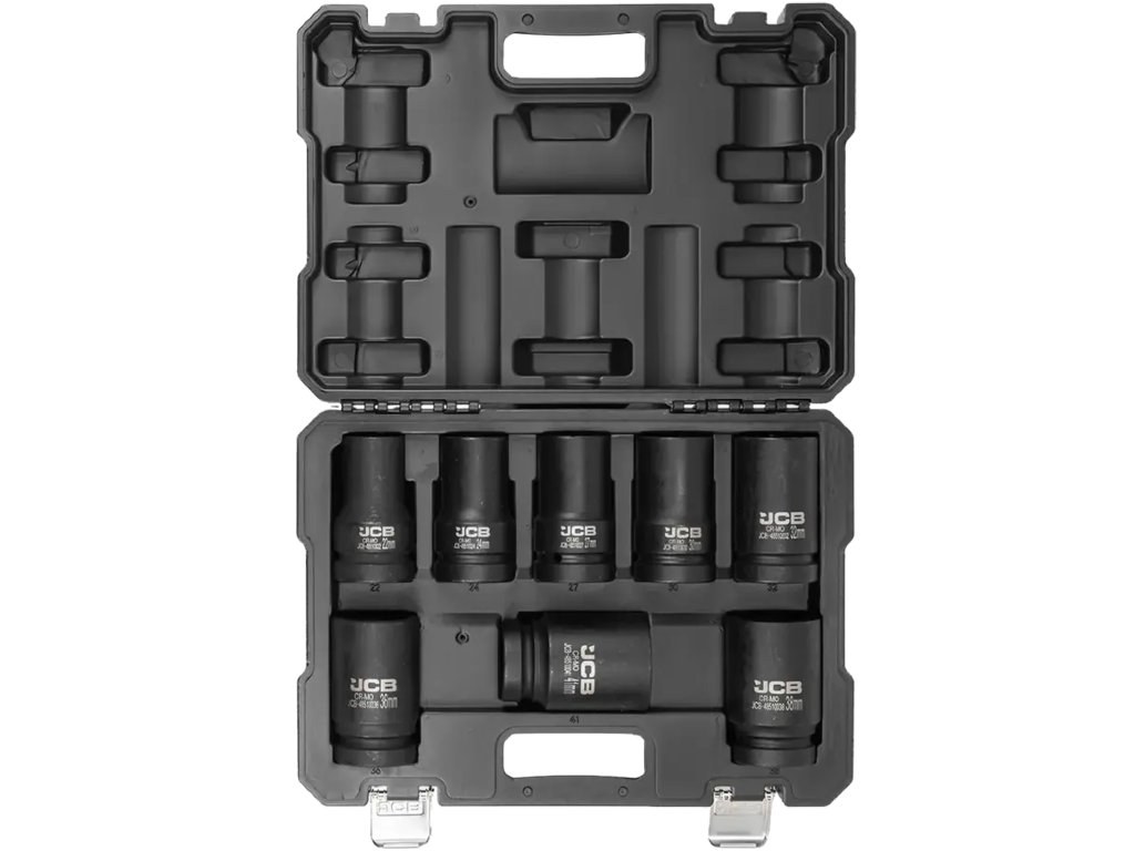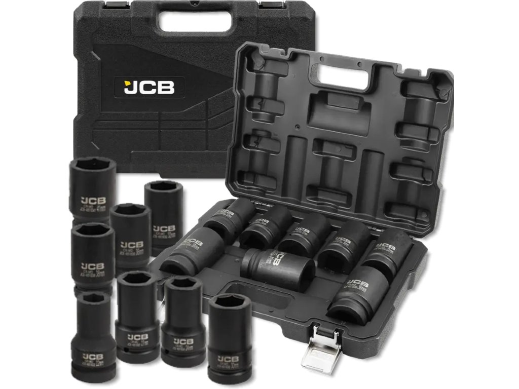 JCB Tools set od 8 udarnih nasadnih ključeva je profesionalni alat dizajniran za intenzivne radioničke radove, uključujući montažu i demontažu vijaka i matica pomoću udarnih ključeva.
