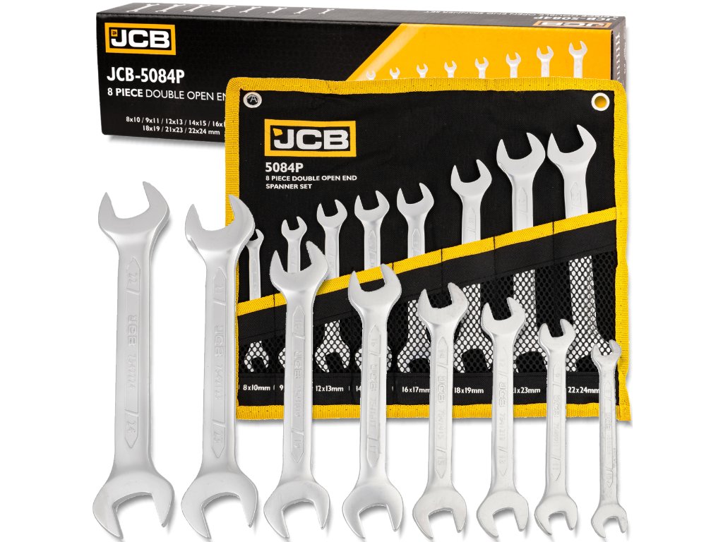 JCB set ravnih dvostranih ključeva, 8 komada, 8–24 mm, Cr-V u kutiji