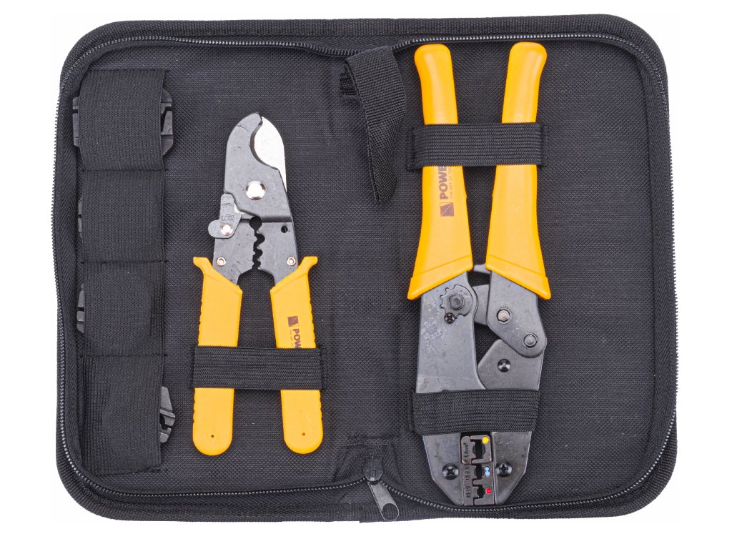 Ovaj set uključuje automatska kliješta s reguliranim mehanizmom za hvatanje i izmjenjivim podlogama prilagođenim za pet tipova elektroničkih konektora. Zamjena podloga je jednostavna i izvodi se otpuštanjem dviju vijaka.