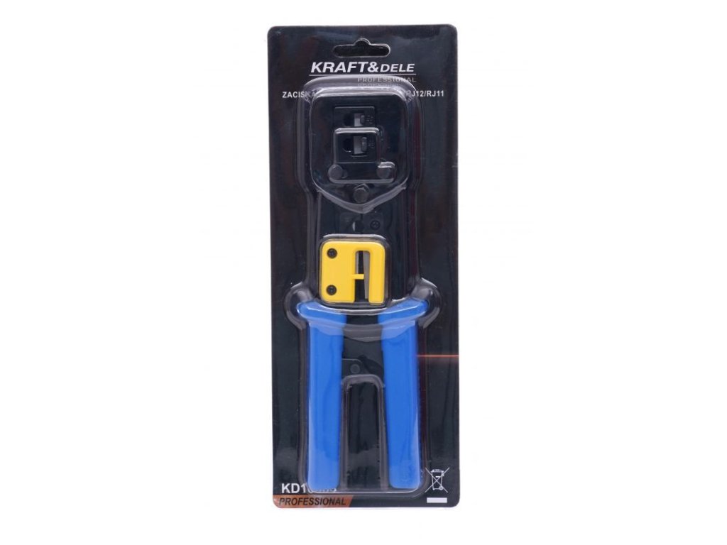 Kliješta za krimpanje prolaznih RJ45 konektora KD10883, marke Kraft&Dele, model KD10883, namijenjena završavanju računalnih ili telefonskih konektora. Neophodan alat svakom instalateru.