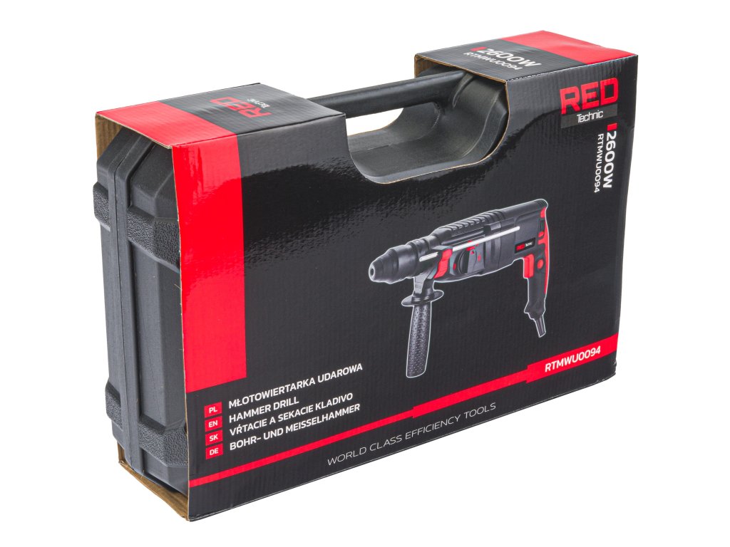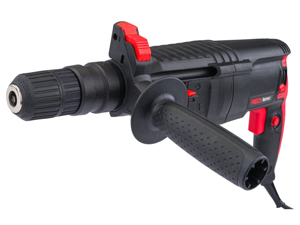 Kombinirani čekić marke RED TECHNIC RTMWU0094 s snagom 2600W opremljen je SDS+ čeljusti i izmjenjivom samozaključavajućom čeljusti.