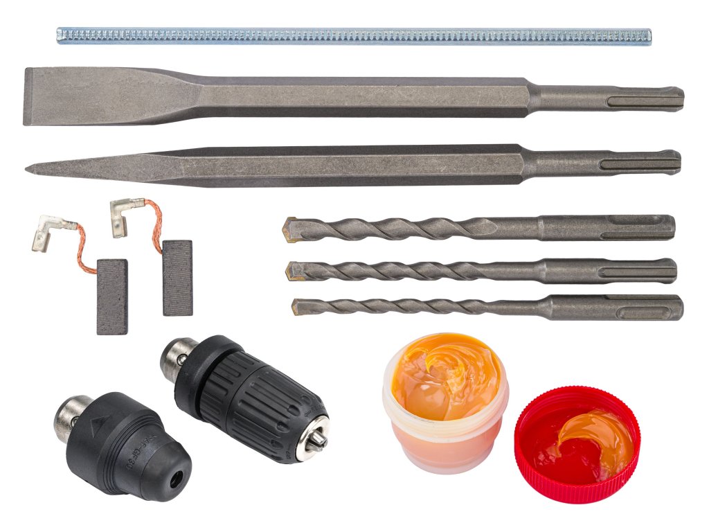 SDS+ čeljust omogućuje rad s namjenskim bušilicama i krunama za zid / beton, kao i miješalicama.
