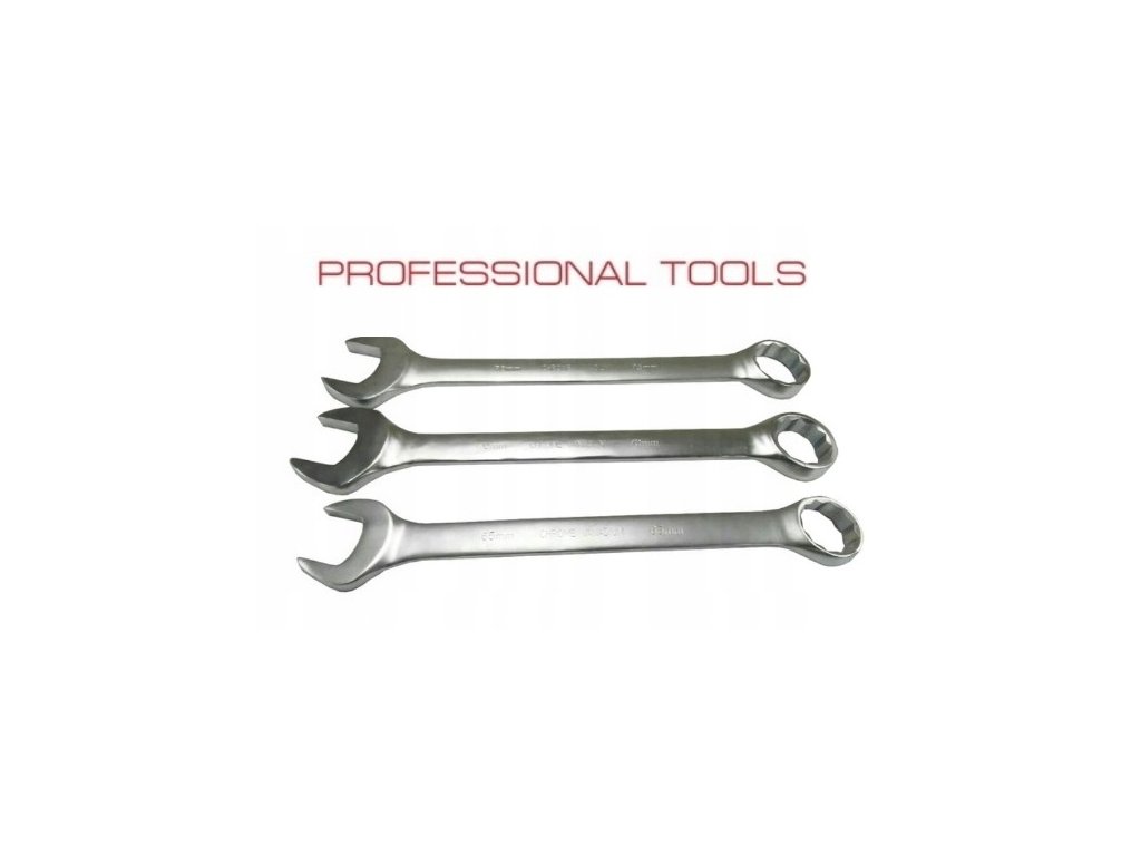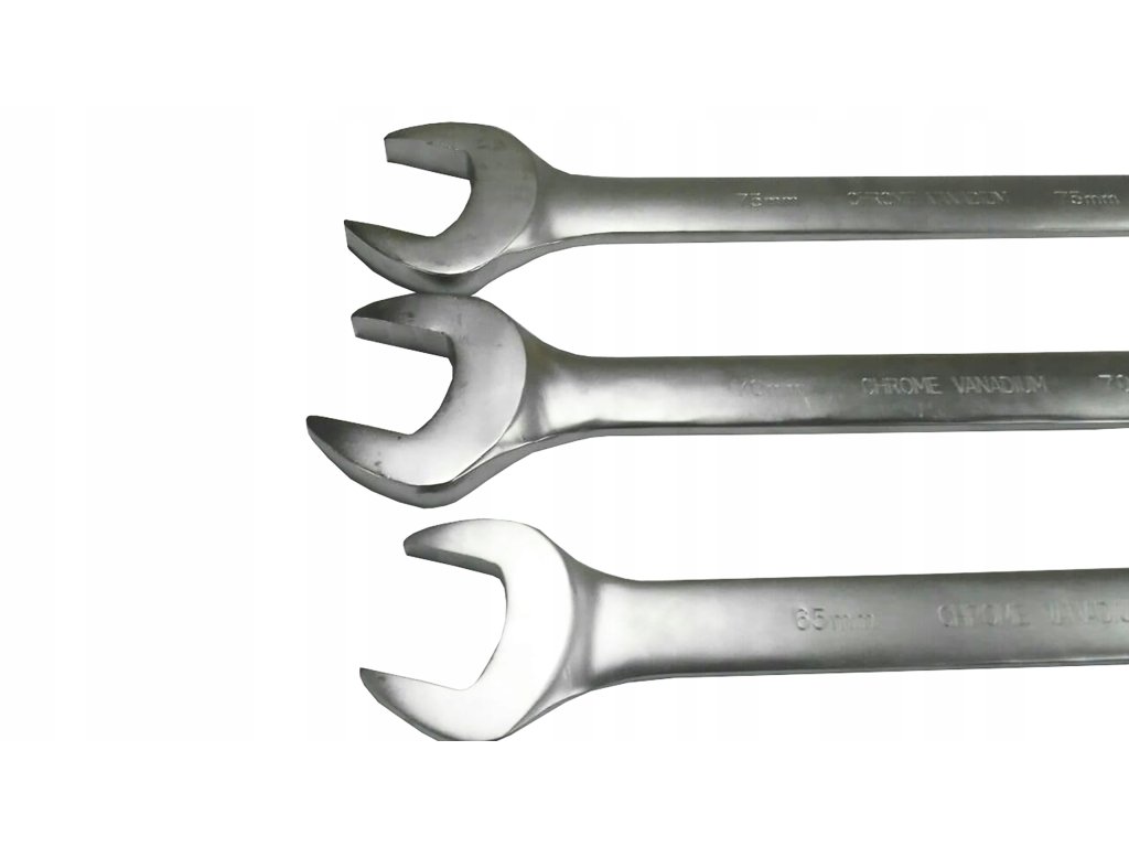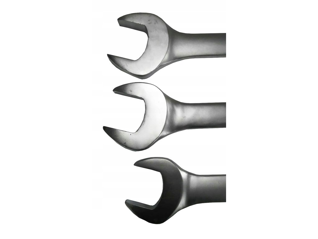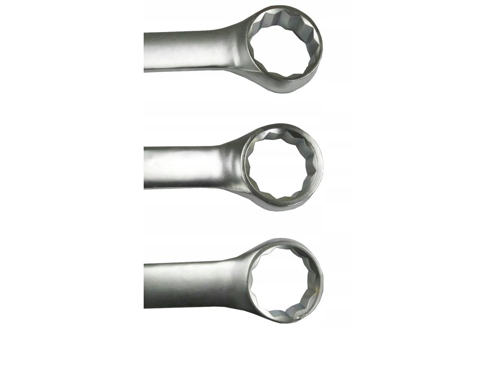 Kombinirani ključ, savijen pod kutom od 15°, izrađen od ugljičnog čelika, površina ključa kromirana, satenski obrađena.