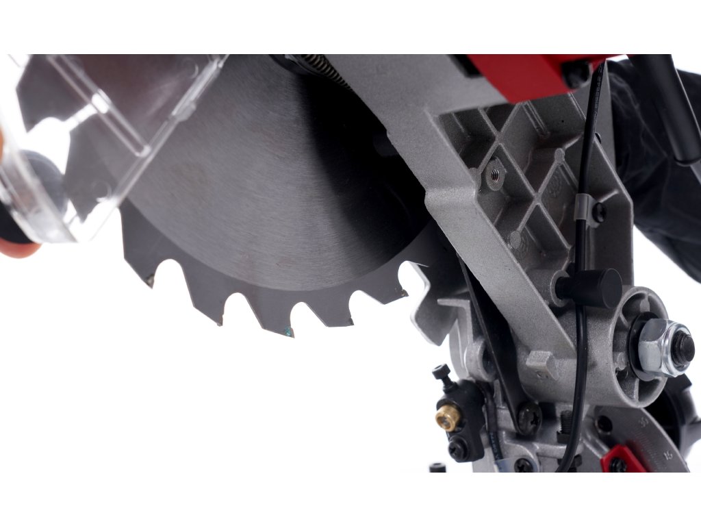 Kutna pila opremljena je podesivim laserom koji točno pokazuje reznu liniju, što značajno olakšava posao i povećava preciznost rezova.
