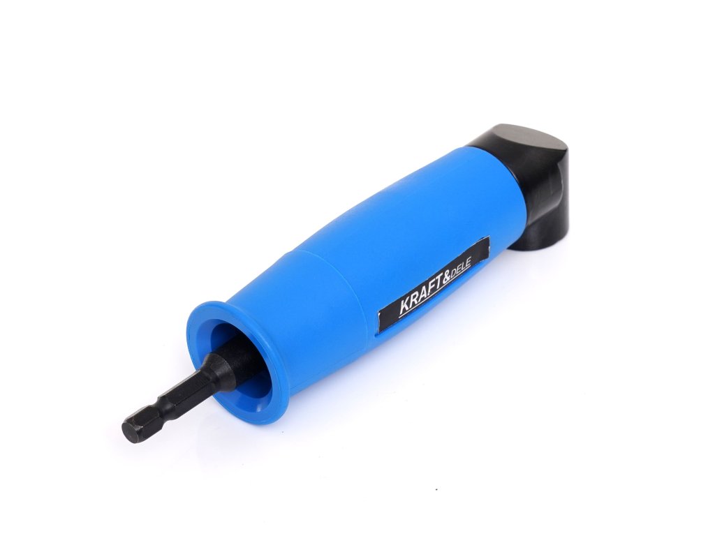 Kutni adapter 90° HEX 1/4" 155 mm za odvijač KD10798 je profesionalan alat koji je idealan za profesionalce, kao i za kućne majstore. Rješenje za rad na teško dostupnim mjestima. Visoka kvaliteta izrade jamči dug vijek trajanja. U držaču se nalazi magnet koji čvrsto drži bit tijekom rada.