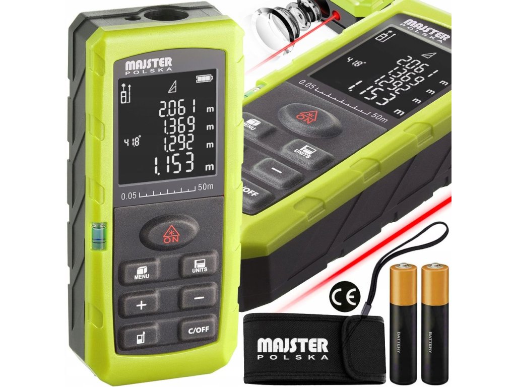Laserski daljinomjer s digitalnim kutnikom, domet 50 m je izuzetno precizan i jednostavan za korištenje alat modernog dizajna i vrhunske kvalitete izrade. Jamči 100% ponovljivost mjerenja i idealan je kako za profesionalnu, tako i za kućnu uporabu.