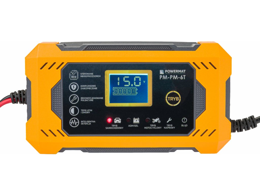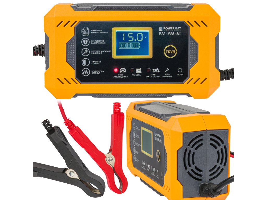 Visokokvalitetni automatski i precizni mikroprocesorski ispravljač akumulatora POWERMAT PM-PM-6T je idealno rješenje za profesionalne servise i autoservise, kao i za kućne garaže. Uređaj je sposoban puniti strujom od 12V.