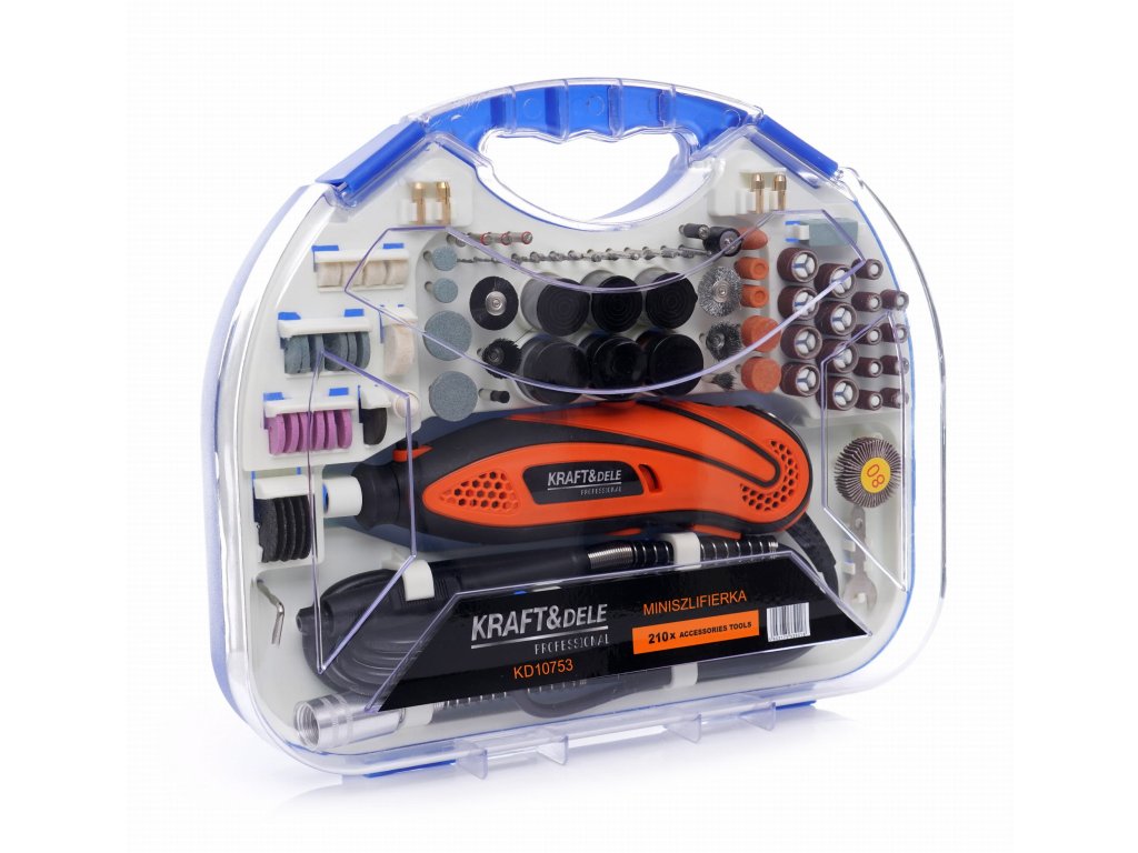 Sadržaj pakiranja: • Mini brusilica/vrtalica 270 W KD10753 • Korisnički priručnik • Originalno pakiranje • Fleksibilna osovina s držačem za nastavke • Brusni diskovi za rezanje • Vretena za učvršćivanje brusnih diskova • Brusne trake • Držači za trake • Gravirajuće vrhove • Kutije • Brušilice i reduktori • Dlijeta • Brušalice • Filci • Diskovi • Freze • Bušilice • Brušni papir • Četke • Žičane četke • I mnoge druge vrlo korisne dodatke |