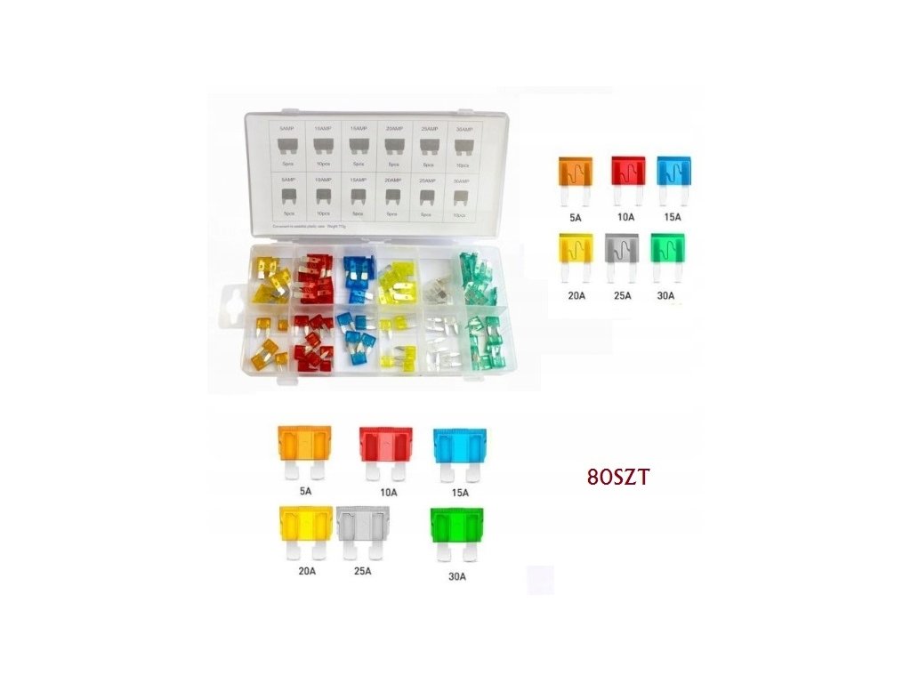 Mini set automobilskih osigurača 5-30 A, 80 komada.