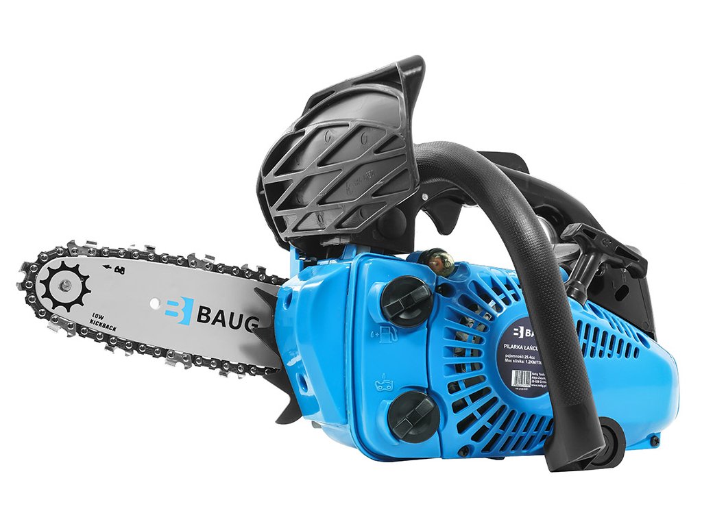 Snažna, lagana i kompaktna Motorna pila 1,2 KS BAUG s motorom snage 1,2 KS nezamjenjiv je alat za svakog vrtlara. Pila je posebno dizajnirana za njegu krošnji drveća. Zahvaljujući visokoj snazi savršeno će se nositi sa svim vrstama drva, idealna je za rezanje i prorjeđivanje grana.