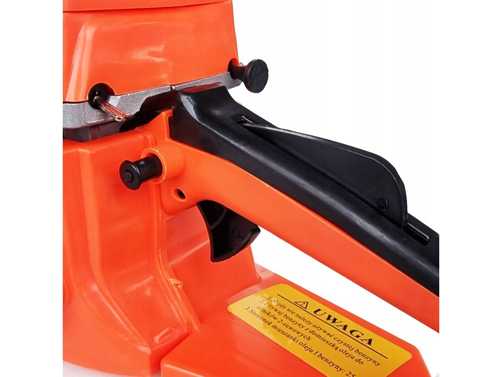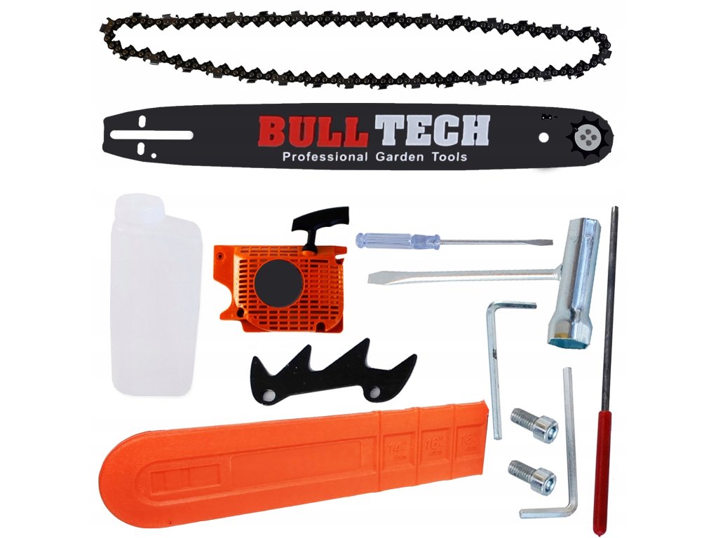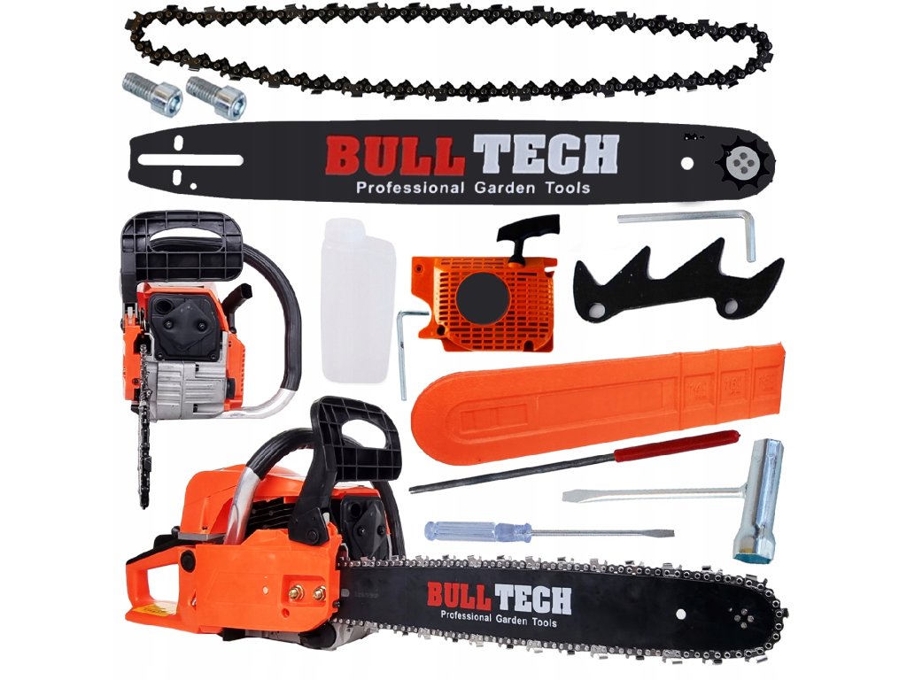 Bulltech motorna pila od 4,9 KS snažan je alat za teško rezanje drva, dizajniran za profesionalnu i amatersku upotrebu. Zahvaljujući snažnom dvotaktnom motoru od 52 ccm sa snagom od 4,9 KS i kromiranim cilindrom, pruža pouzdane performanse čak i za najzahtjevnije zadatke. Pila je opremljena vodilicom od 45 cm i lancem s korakom od 0,325", što omogućuje učinkovito rezanje drva različitih debljina. Maksimalna brzina od 8000 o/min osigurava brze i precizne rezove.