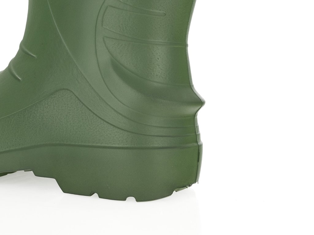 Obuća od EVA materijala idealna je za svakodnevnu upotrebu i rekreativne aktivnosti, poput vrtlarstva, poljoprivrede, ribolova ili lova. Ova obuća učinkovito štiti od hladnoće i vlage, osiguravajući potpunu izolaciju od površine i otporna je na niske temperature do -30 °C. Zbog svoje niske težine prikladna je za višesatno nošenje, što doprinosi udobnosti tijekom cjelodnevnog korištenja. Obuća također ima protukliznu otpornost prema standardu SRC.