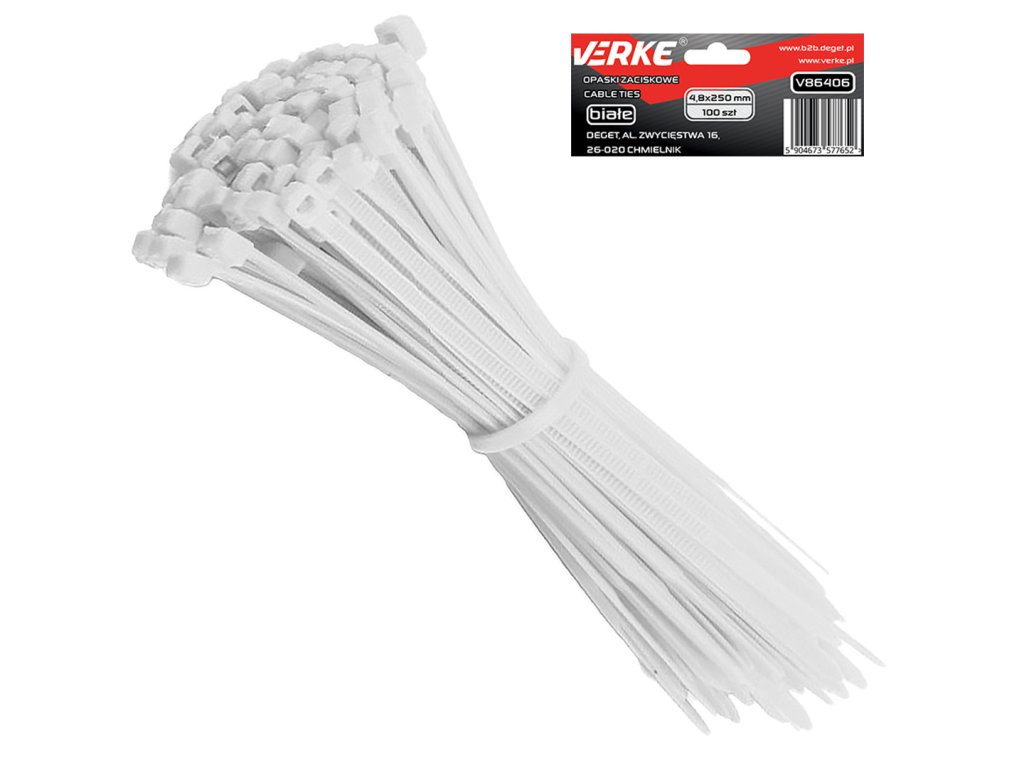 Najlonske vezice 4,8x250 mm bijele 100 ks VERKE V86406