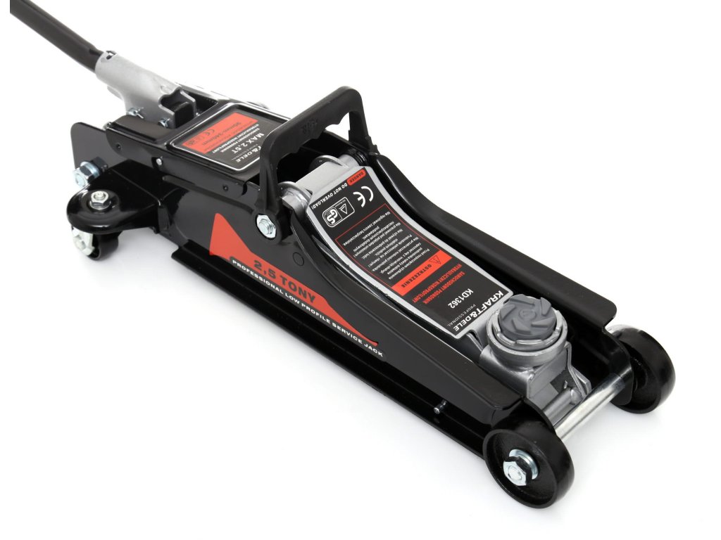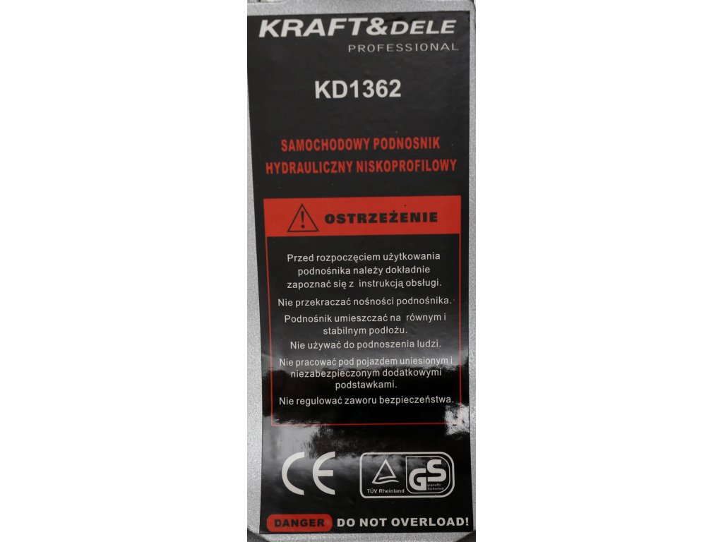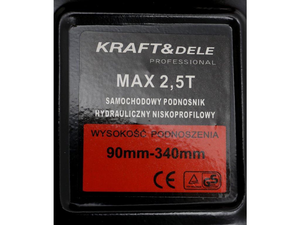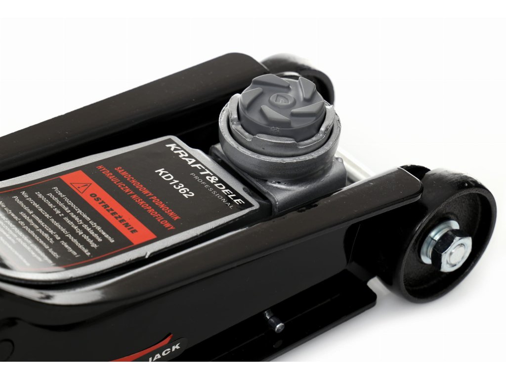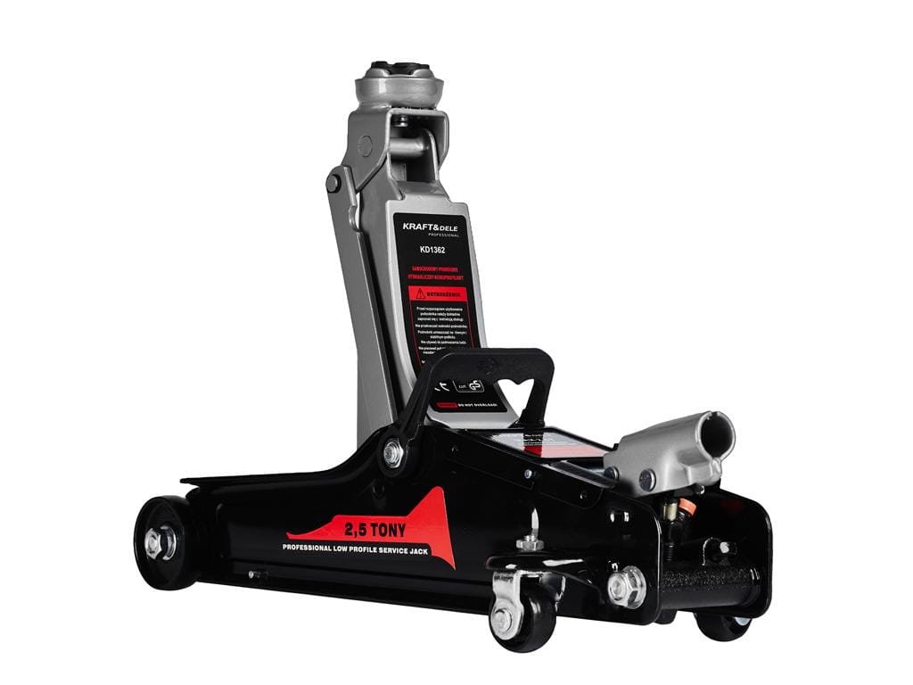 Niskoprofilna dizalica 2,5 t KD1362 marke Kraft&Dele je namijenjena za podizanje automobila do visine od 90 mm do 340 mm, izrađena od čvrstih materijala koji osiguravaju dugotrajnost i izdržljivost.