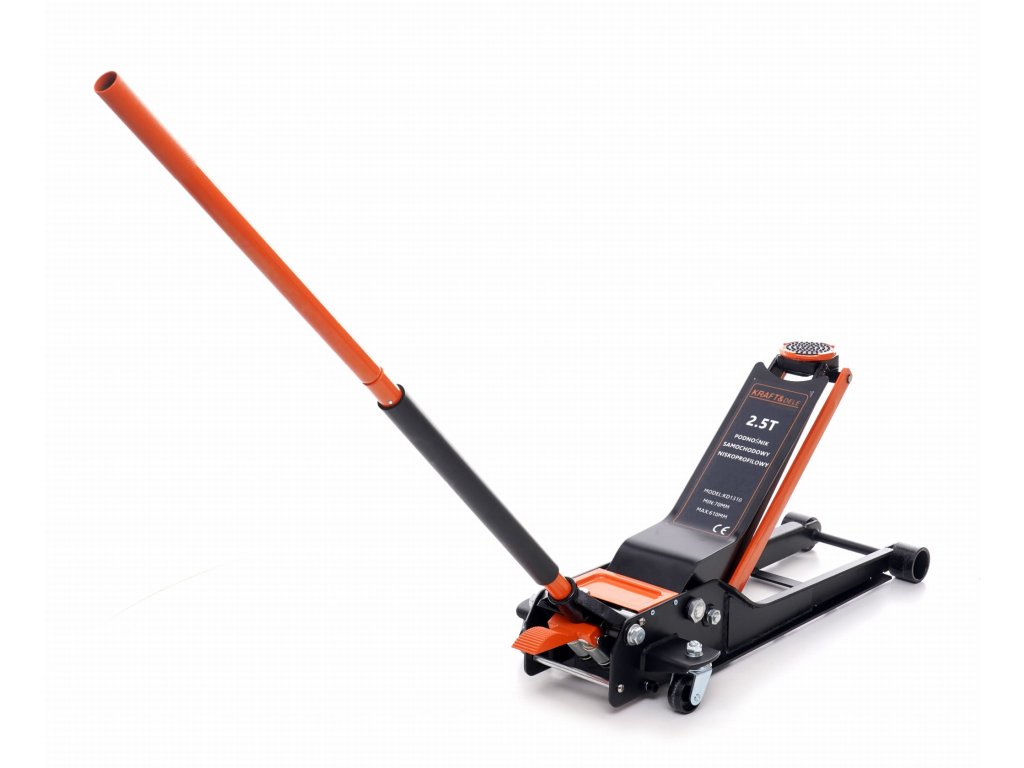 Niskoprofilna dizalica za automobil 2,5 t KD1310 marke Kraft&Dele namijenjena za podizanje vozila do visine od 70 mm do 610 mm, izrađena od čvrstih materijala koji osiguravaju dugotrajnost i otpornost.