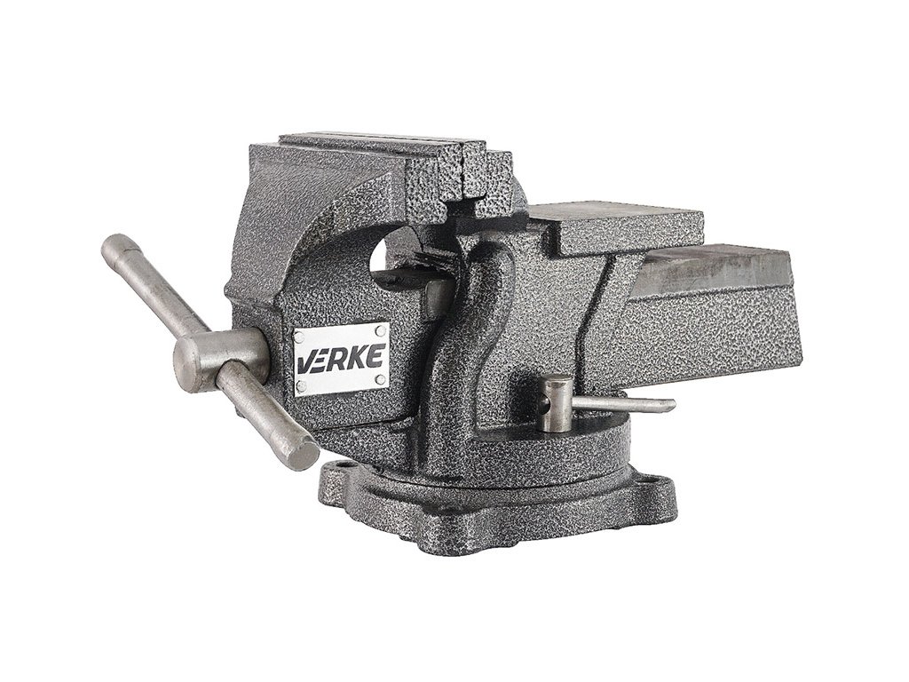 Profesionalni okretni škripac marke VERKE. Namijenjen za zahtjevne radionice, strojarsku, opću mehaniku i automobilsku industriju, precizno izrađen od najboljih materijala, iznimno univerzalan zahvaljujući mogućnosti rotacije. Tijelo škripca izrađeno je od sivog liva, izmjenjive čeljusti dužine 125 mm i nakovanj od tvrdog čelika. Škripac je montiran na okretnoj bazi. Površina prekrivena crnim "čekić" lakom.