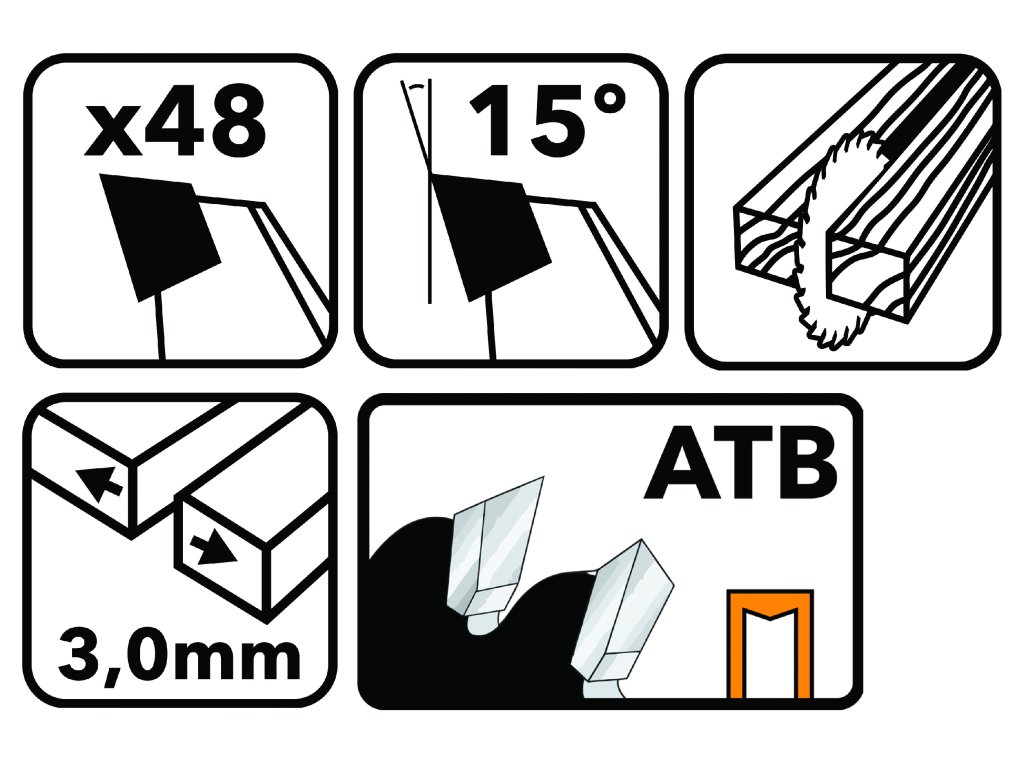 Izdržljiv disk od kaljenog čelika sadrži 48 reznih zuba, što osigurava učinkovito rezanje.