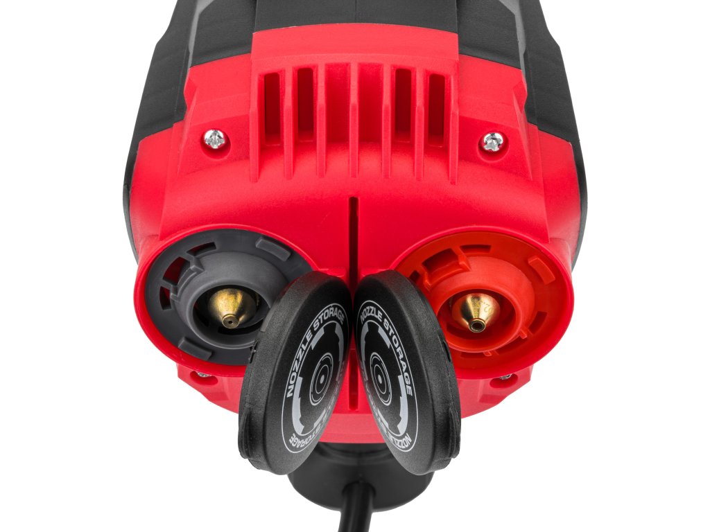 Na stražnjoj strani kućišta nalazi se praktičan prostor za pohranu dodatnih mlaznica i ravnog ključa, čime korisnik ima uvijek sve na dohvat ruke kada treba promijeniti veličinu mlaznice.