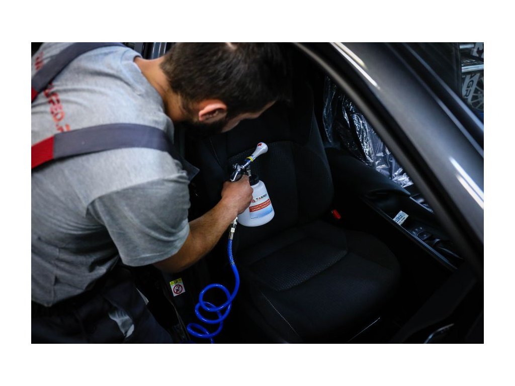 Zahvaljujući posebno oblikovanoj mlaznici s rotirajućim središtem, pištolj pod pritiskom komprimiranog zraka generira pjenasti sredstvo za čišćenje koje nježno čisti sve površine, dok ih samo lagano vlaži. Ovaj vrlo učinkovit uređaj troši minimalne količine vode i sredstava za čišćenje, a dostupan je i na teško dostupnim mjestima, kao što su spojevi, gdje obična spužva, krpa, četka ili kist ne mogu doći. Idealno je prikladan za komercijalno čišćenje raznih vrsta površina, kao što su presvlake, namještaj, kotači i otvori za zrak.