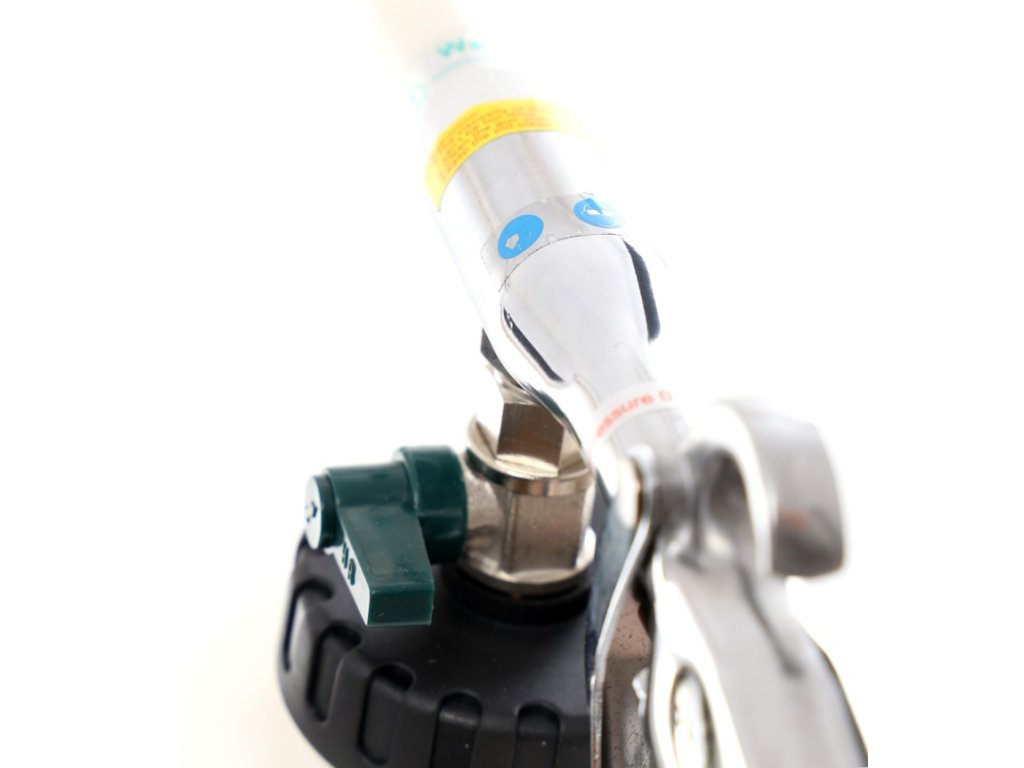 Za njegovo korištenje nisu potrebni veliki kompresori – dovoljan je pritisak od 5 bara. Pištolj je opremljen regulacijskim sustavom koji omogućuje individualno podešavanje doziranja sredstva za čišćenje prema čišćenoj površini.