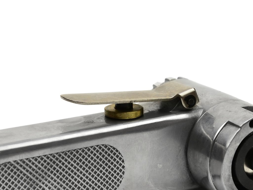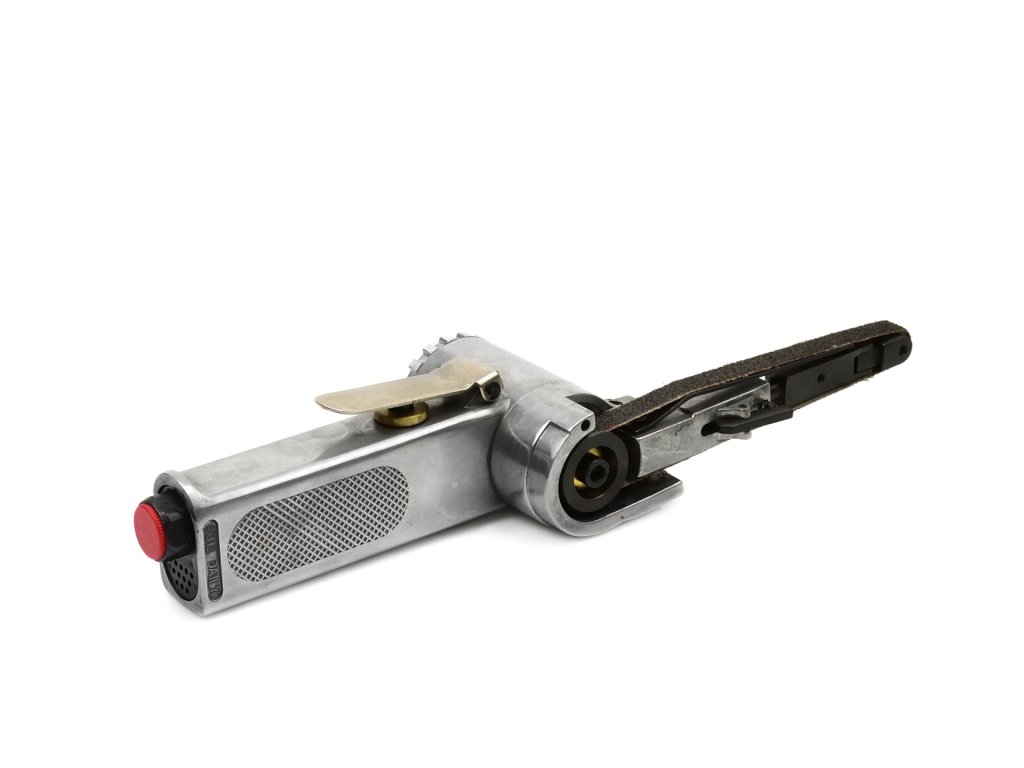 Pneumatska tračna brusilica G03153 10x330 mm je idealan alat za brušenje na teško dostupnim mjestima, napajana komprimiranim zrakom. Opremljena teleskopskim napinjačem omogućuje brzu i jednostavnu zamjenu brusnog papira bez upotrebe alata.