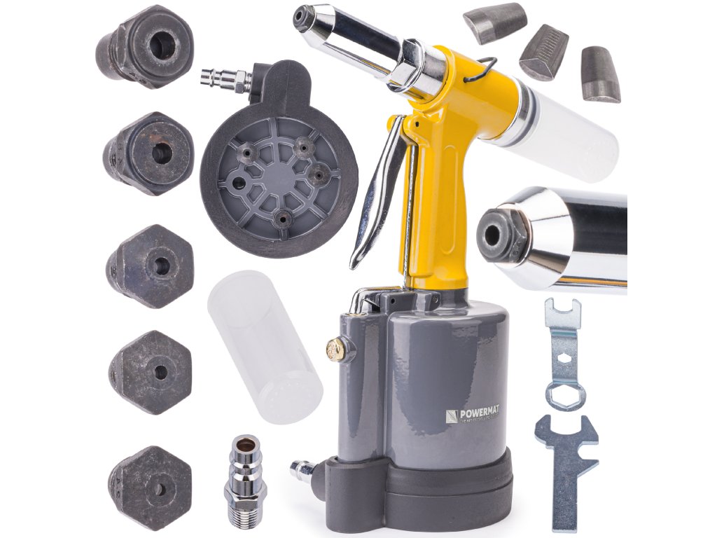 Visokokvalitetna pneumatska zakivačica namijenjena je za korištenje s vlačnim zakovicama promjera od 2,4 mm do 6,4 mm. Omogućuje stvaranje trajnih spojeva zakovicama izrađenim od aluminija, nehrđajućeg čelika, čelika i bakra. Zakivačica je opremljena spremnikom za skupljanje otpada nastalog tijekom zakivanja, što je čini idealnim alatom za industrijsku primjenu.