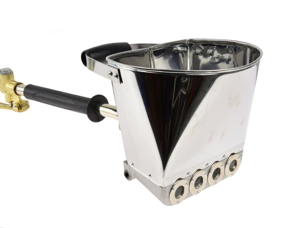 Visokokvalitetni pneumatski žbukanja pištolj namijenjen je za nanošenje različitih vrsta smjesa na zidove, kao što su žbuke od gipsa, cementa, vapna, vapneno-cementne, glinene, sanacijske i tradicionalne žbuke. Ovaj žbukanja pištolj izrađen je od visokokvalitetnog nehrđajućeg čelika i aluminija, što osigurava dugotrajnju trajnost i otpornost.