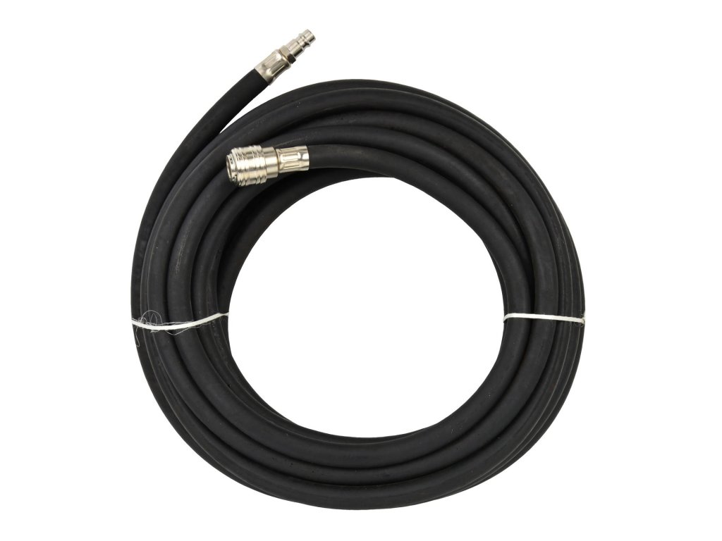 Profesionalna pneumatska gumena cijev duljine 10 metara idealan je izbor za zahtjevne uvjete. Izrađena je od gume koja je otporna na ulje i trošenje. Fleksibilan materijal osigurava da ne dolazi do trajnih deformacija, čime se produljuje vijek trajanja cijevi. Cijev se isporučuje kompletna, s standardnom bržom spojkom i utičnicom.