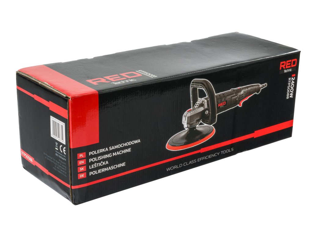 - Snaga od 2400W: Polirka/brusilica Red Technic nudi impresivnu snagu od 2400W, što omogućava učinkovito poliranje i brušenje površina vozila, jamčeći profesionalne rezultate u kratkom vremenu.