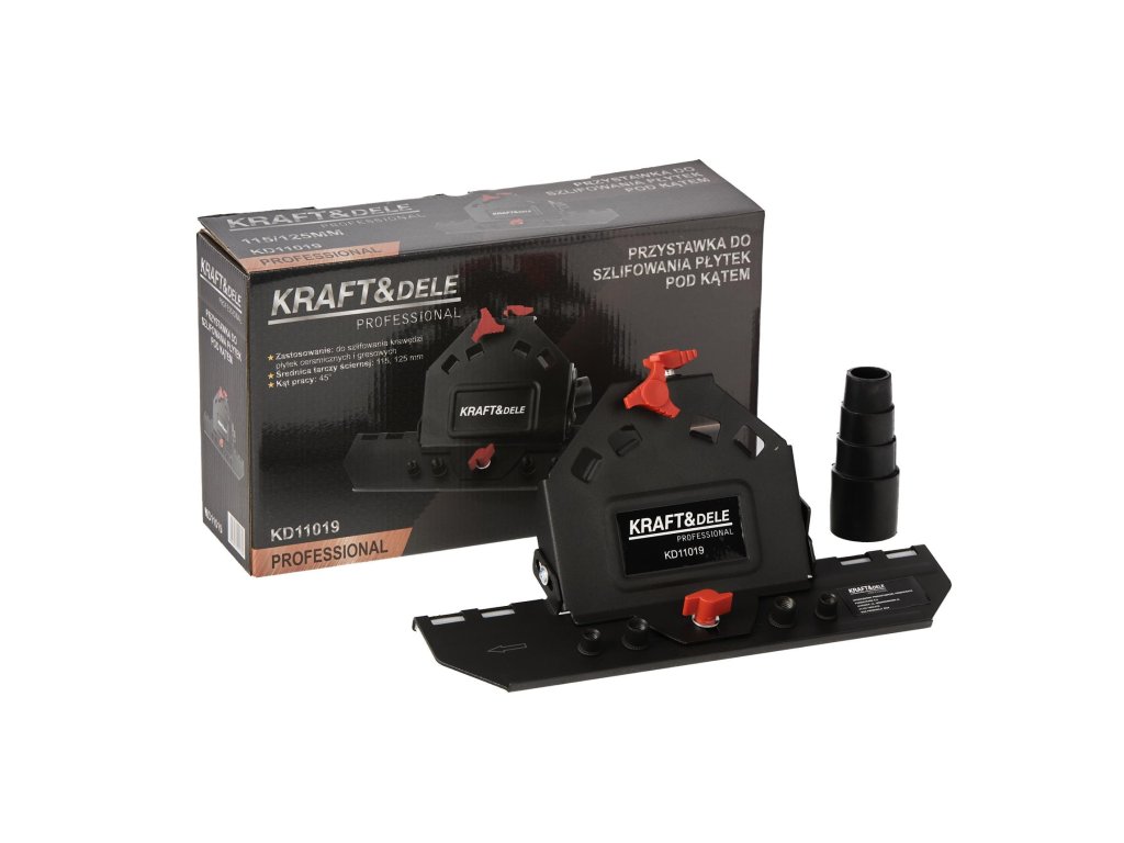 Profesionalni pribor za rezanje pod kutom marke Kraft&Dele, model KD11019, omogućuje precizno i točno rezanje pod kutom 45° različitih materijala, npr. keramičke pločice, gres, žulu, mramor i druge. Pribor je stekao visoku popularnost među profesionalcima i amatérima.
