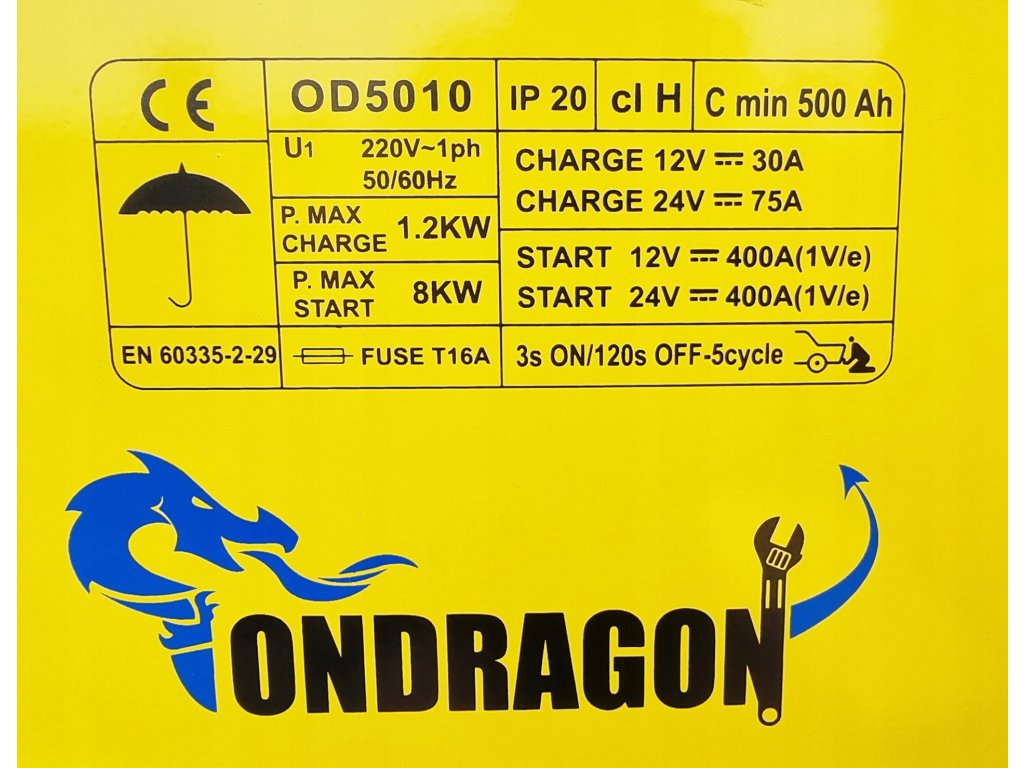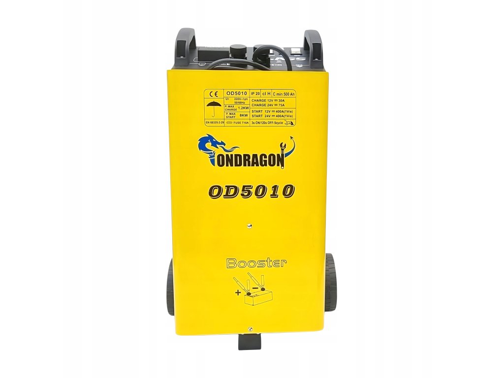 Ondragon 400A je pouzdan i snažan pomoćnik za punjenje i pokretanje baterija u vozilima svih vrsta - od osobnih automobila do komercijalnih vozila. Nudi kombinaciju snage, kompaktnosti i jasnog upravljanja zahvaljujući modernom LCD zaslonu. S mogućnošću punjenja 12 V i 24 V, funkcijom pokretanja pomoću kablova i jednostavnim transportom na kotačima, idealan je izbor za automehaničarske radionice i kućne radionice.