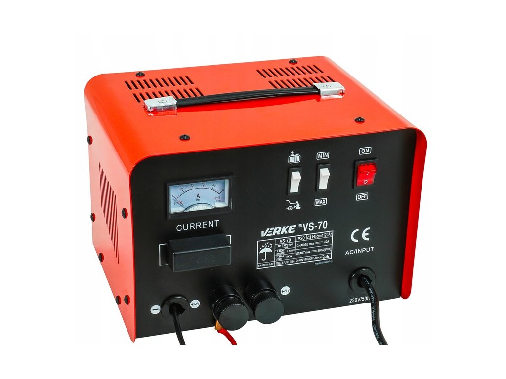 Punjač je opremljen zaštitom od kratkog spoja, preopterećenja akumulatora i nepravilnog povezivanja. Ugrađeni ampermetar omogućava stalnu kontrolu procesa punjenja.