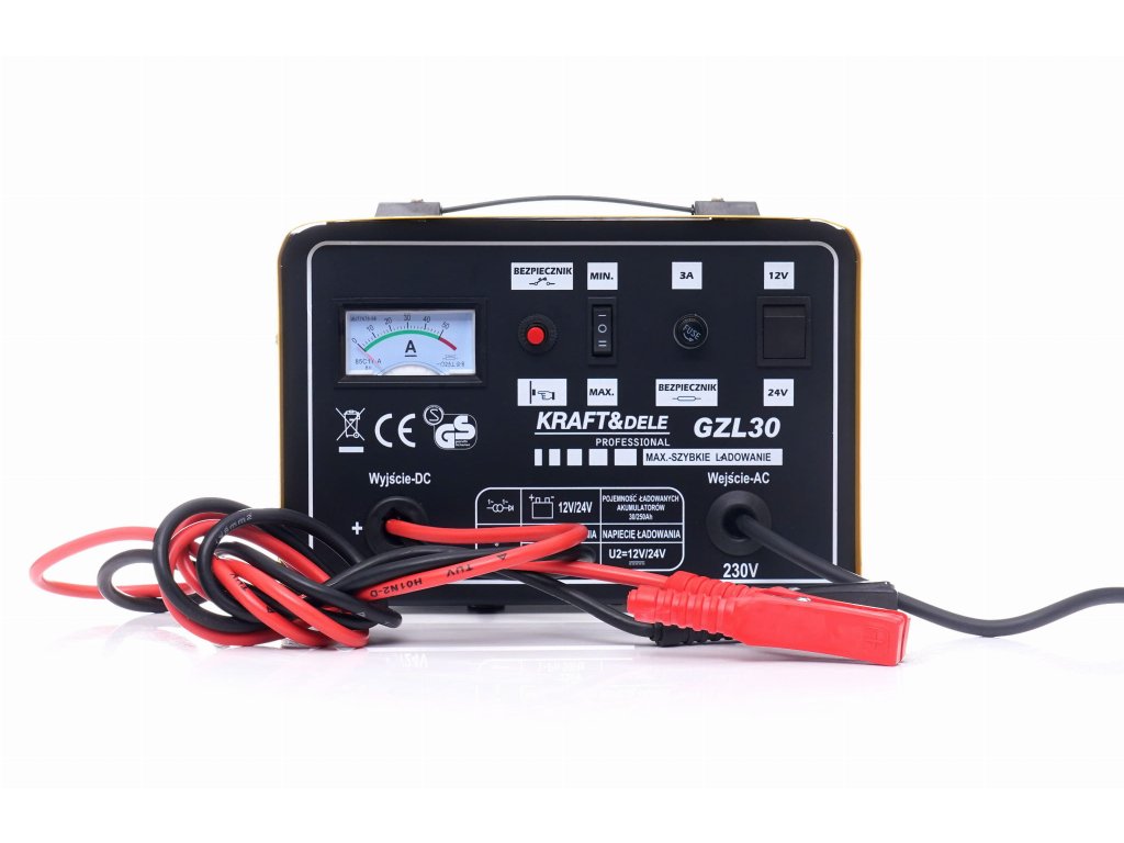 Punjač za auto 30 A 90–250 Ah Mikroprocesorski uređaj KD1923 tvrtke Kraft & Dele je pouzdan uređaj za punjenje svih tipova olovnih baterija (WET/MF/CA/EFB/GEL/AGM). Vrijeme punjenja akumulatora ovisi o njegovom nominalnom kapacitetu i stupnju pražnjenja.