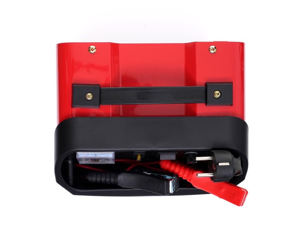 Parametri: • Napajanje: 230V 50/60Hz • Podržani akumulatori: 20Ah–60Ah • Napon punjenja: 12V/24V • Punjački izlaz: 10A • Pločasti osigurač: 10A • Opremljen ampermetrom • Težina: 4,5 kg |