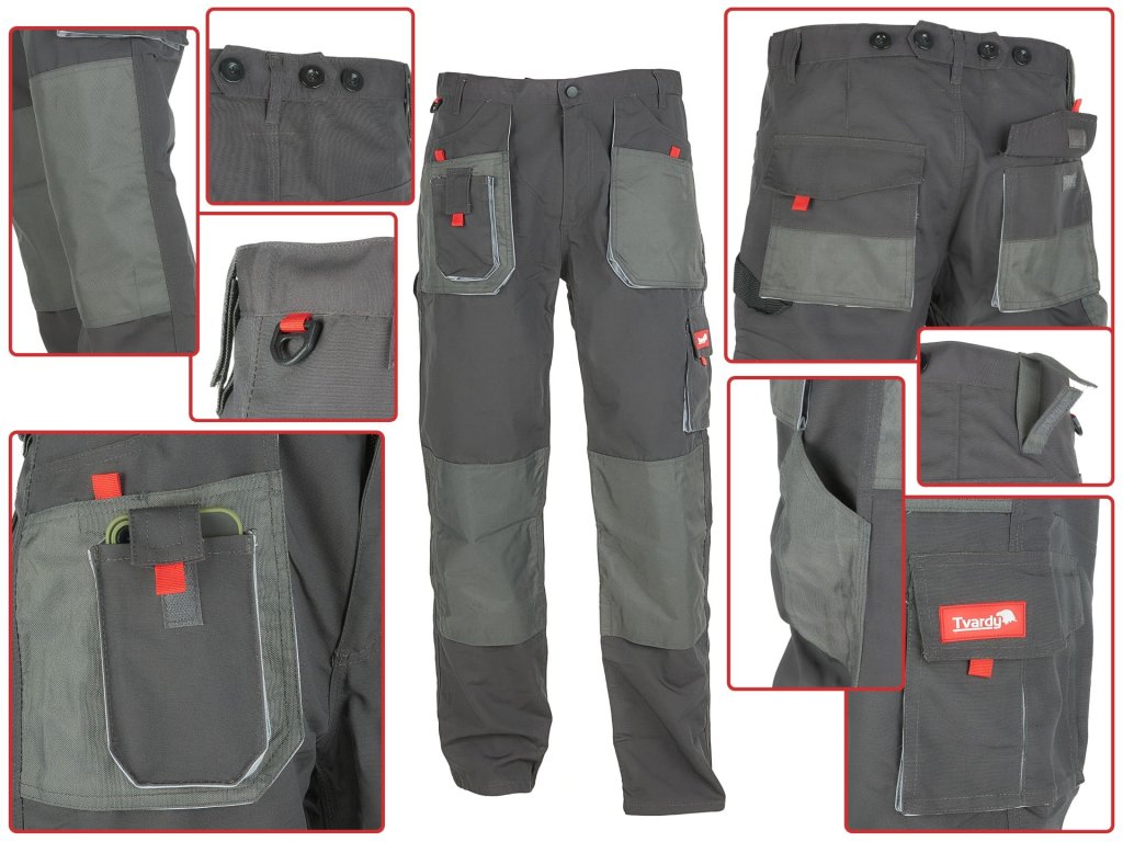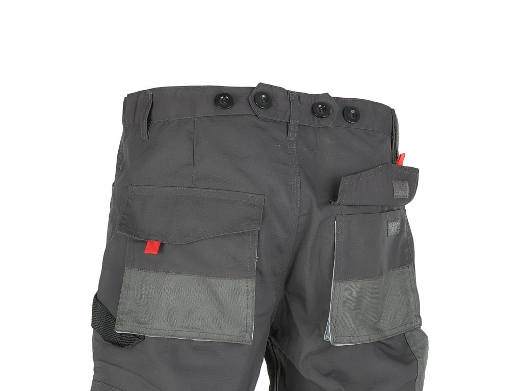 Hlače nude 9 džepova, uključujući 6 s čičkom i posebni džep za pametni telefon. Širinu hlača moguće je prilagoditi pomoću regulacijskih dugmadi. Praktično rješenje dodatno obogaćuje petlja za ključeve i pouzdano mjesto za čekić.