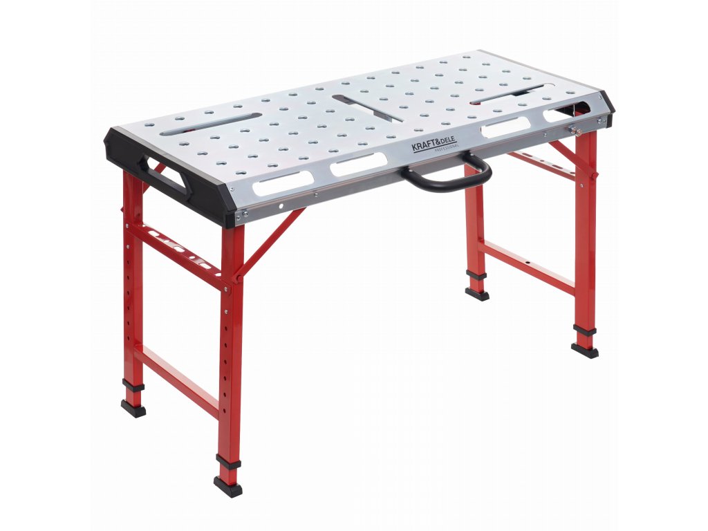 Praktični sklopivi zavarivački stol marke Kraft&Dele, model KD639, idealan je za mobilne servisne radove, servis i slično. Konstrukcija omogućuje spajanje dodatnih stolova radi proširenja radne površine.