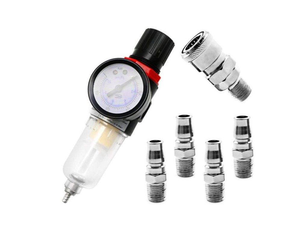 Profesionalni redukcijski ventil s odvajačem vode od tvrtke Kraft&Dele, model KD1495, smanjuje i održava stalni radni tlak potreban za ispravan rad pneumatskih uređaja, poput lakirničkih pištolja, pištolja za napuhavanje ili udarnih ključeva.