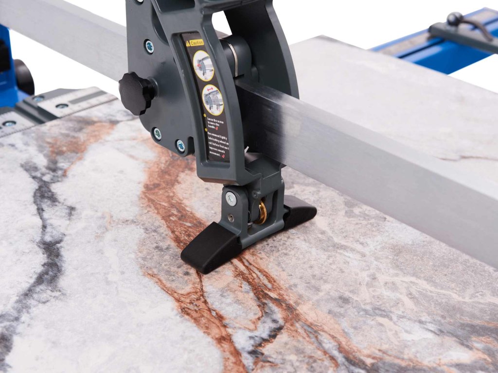 Rezač omogućuje rezanje ravnog reza do dužine 1200 mm i kosi rez do dužine 850 mm. Zahvaljujući sili lomljenja od 1000 kg, ovaj rezač namijenjen je zahtjevnom korištenju. Dvije bočne potpore dužine 28 cm, prekrivene pjenom, osiguravaju stabilnost tijekom rezanja. Rezač je također opremljen bočnom potporom za koso rezanje, što proširuje mogućnosti korištenja ovog profesionalnog alata za obradu keramičkih pločica.