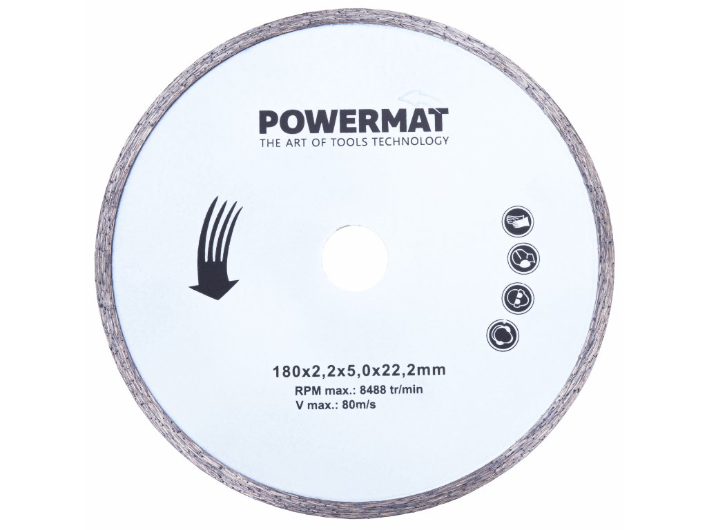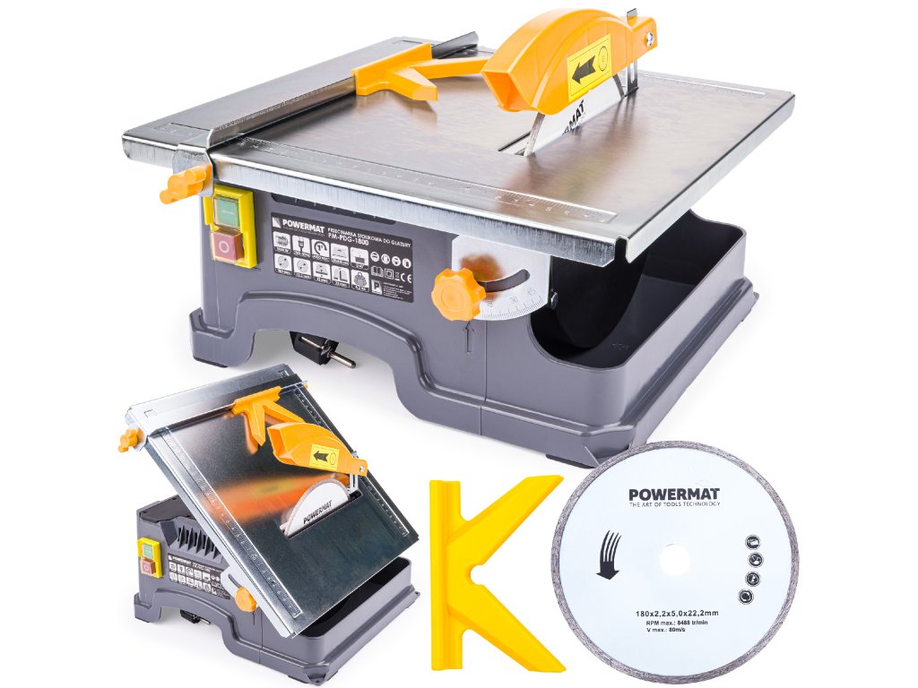 Disk pila Powermat PM-PDG-1800 je idealna za precizno rezanje svih vrsta pločica. Opremljena kvalitetnim diamantnim diskom i praktičnom posudom za vodu za učinkovito hlađenje diska.