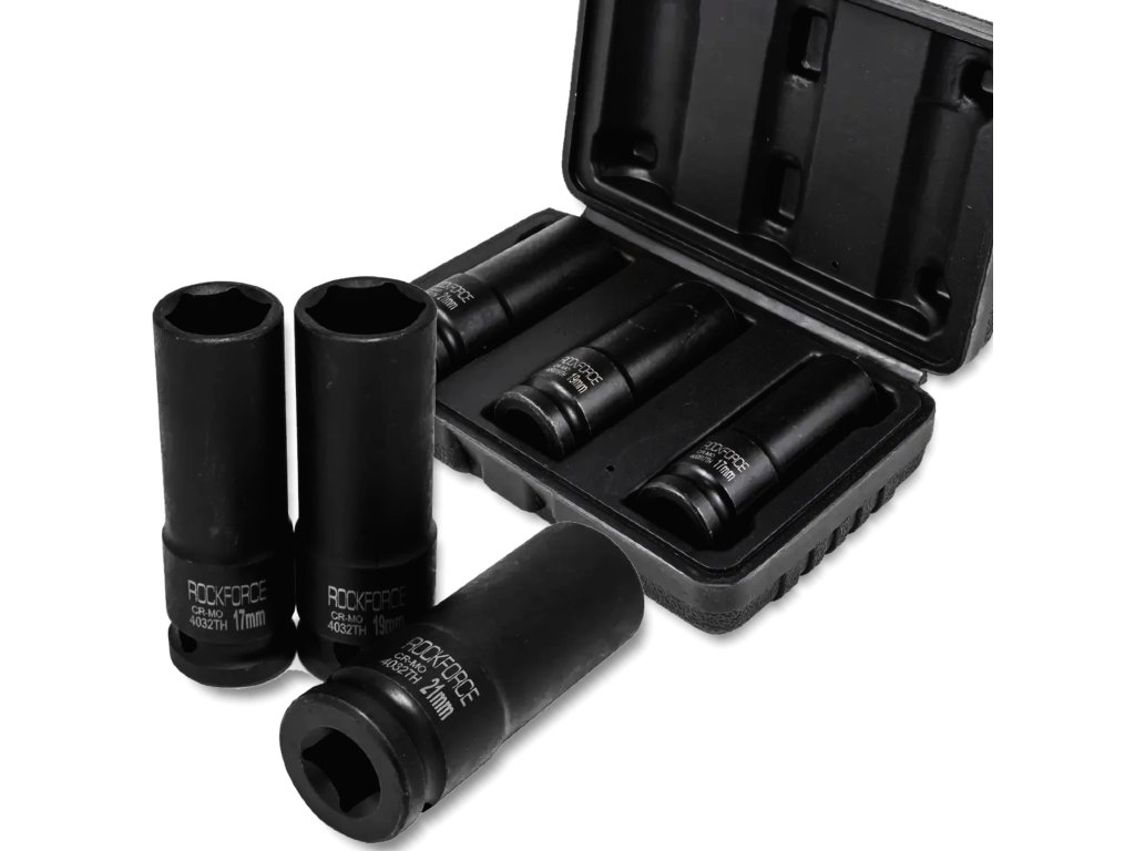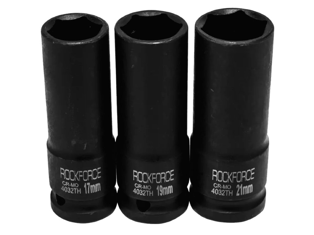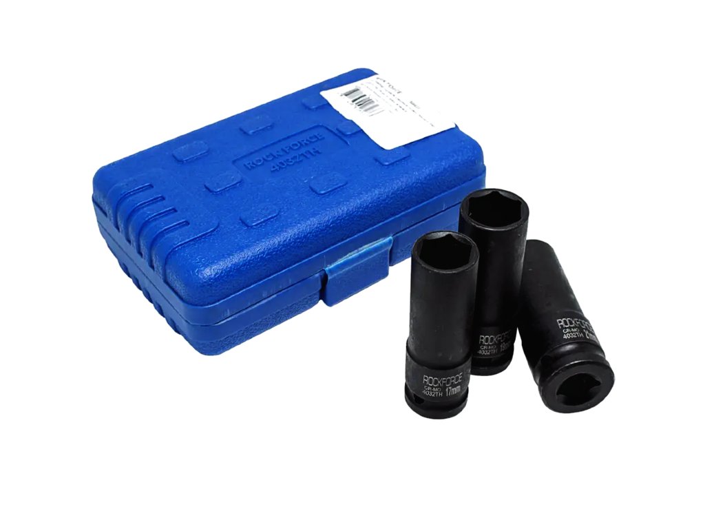 ROCKFORCE Set tankostijenih udarnih nasadnih ključeva 1/2", 6-kraki, 3 komada.