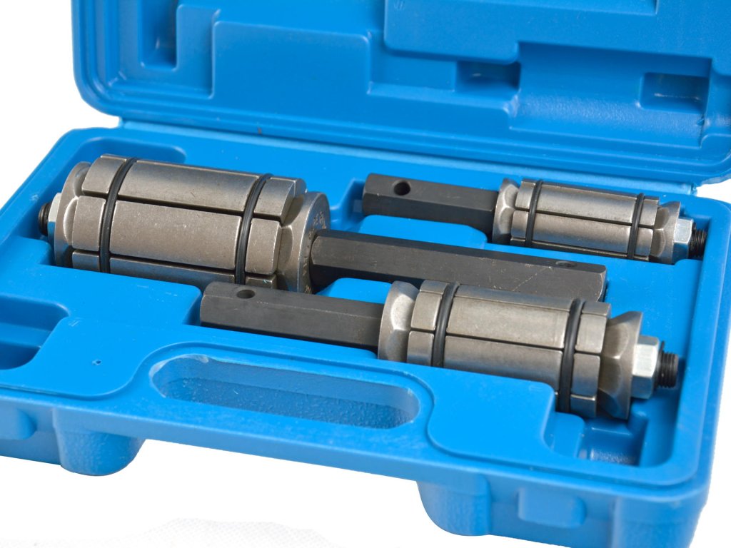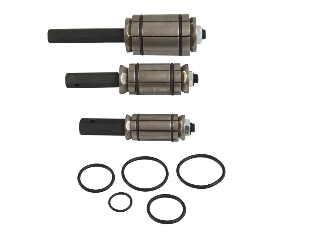 Profesionalna set adaptera služi za popravke okruglih profila cijevi i proširivanje njihovog promjera. Ova set je savršen za spajanje dviju cijevi istog promjera, a posebno je pogodan za ispušne cijevi, prigušivače i katalizatore.