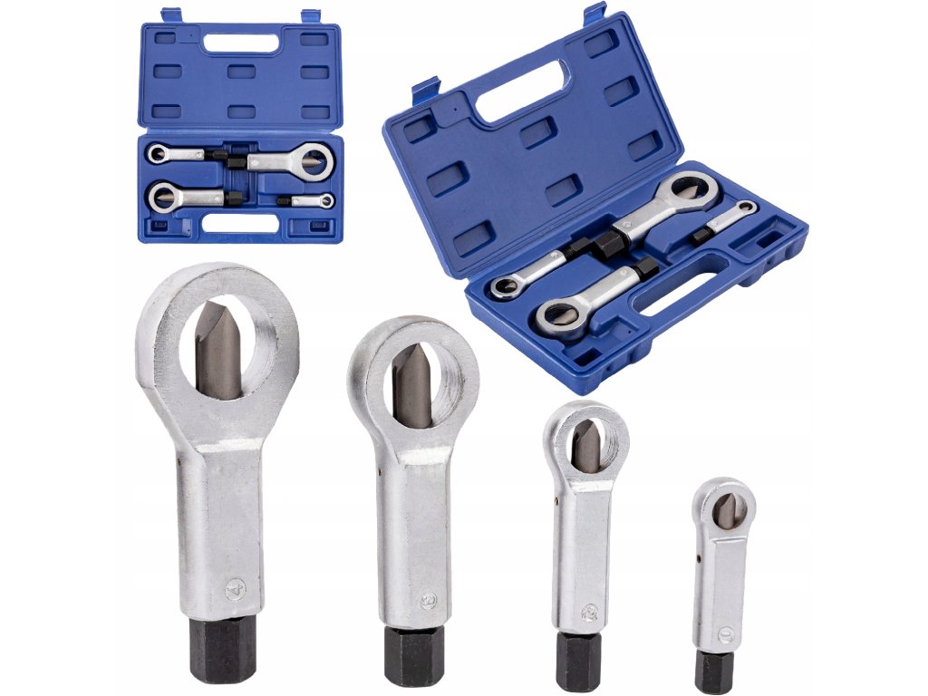 Sada odvijača za vijke i matice s dimenzijama od 9 mm do 27 mm idealan je alat za uklanjanje oštećenih matica i vijaka. Zahvaljujući robusnoj konstrukciji od chrom-vanadične i chrom-molybdenum čelika, odvijači se nose s najzahtjevnijim mehaničkim radovima. Sada sadrži 4 veličine odvijača i praktični kofer za jednostavno pohranjivanje i prenošenje. Izvrsna pomoć za završne i popravne radove.