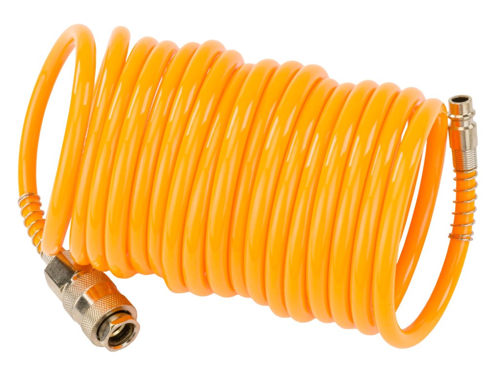 Spiralna pneumatska crijeva dužine 5 metara, idealna za povezivanje pneumatskih alata, pištolja za prskanje i drugih pneumatskih uređaja, kao i za produženje postojećih pneumatskih crijeva.