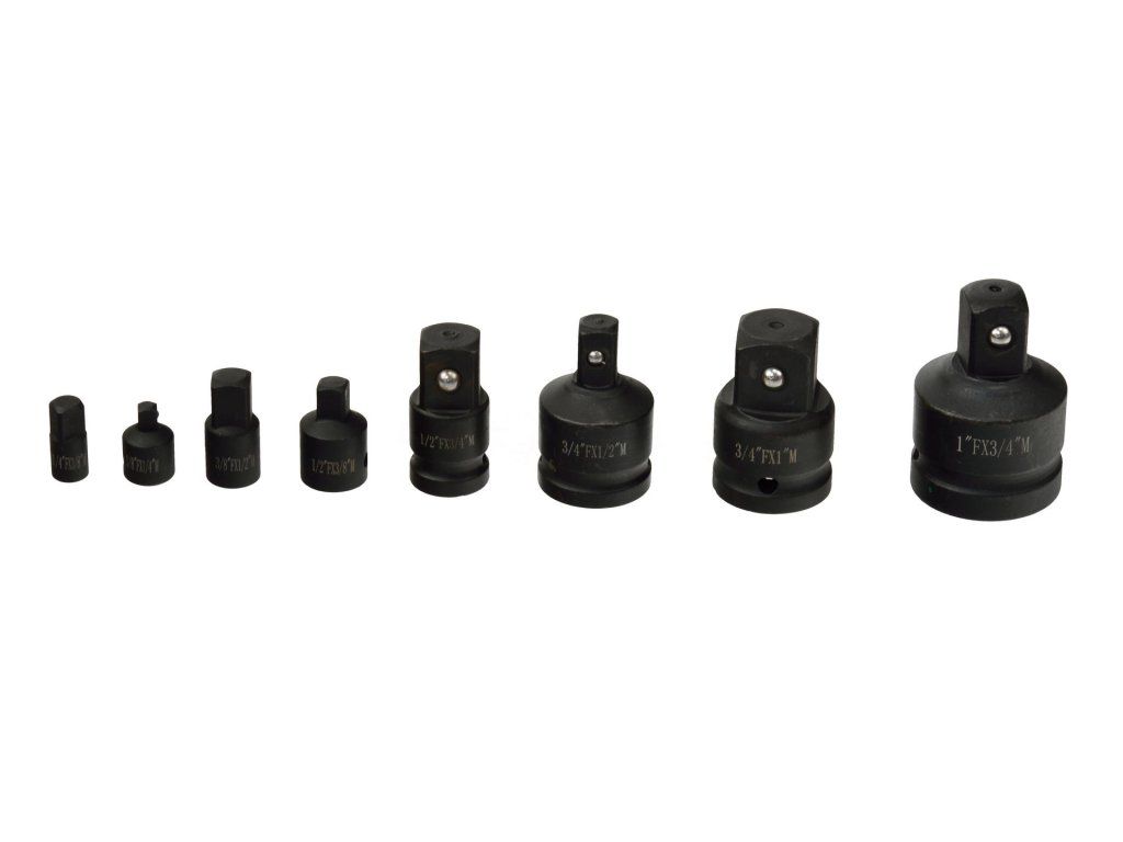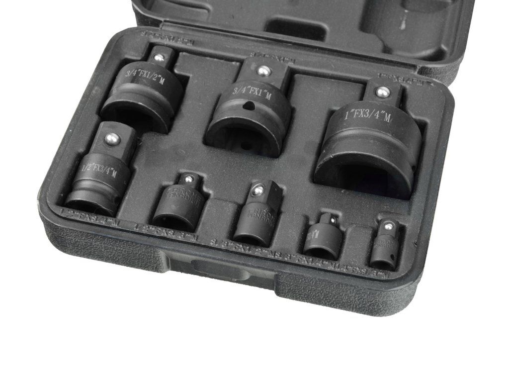 Sada udarnih redukcija 8 kom je idealna za rad pod velikim opterećenjem. Ove redukcije su pogodne za korištenje u domaćoj radionici, kao i za profesionalne primjene. Svaka redukcija opremljena je prostorom za klin i sigurnosnim prstenom, što osigurava njihovo sigurno učvršćenje.