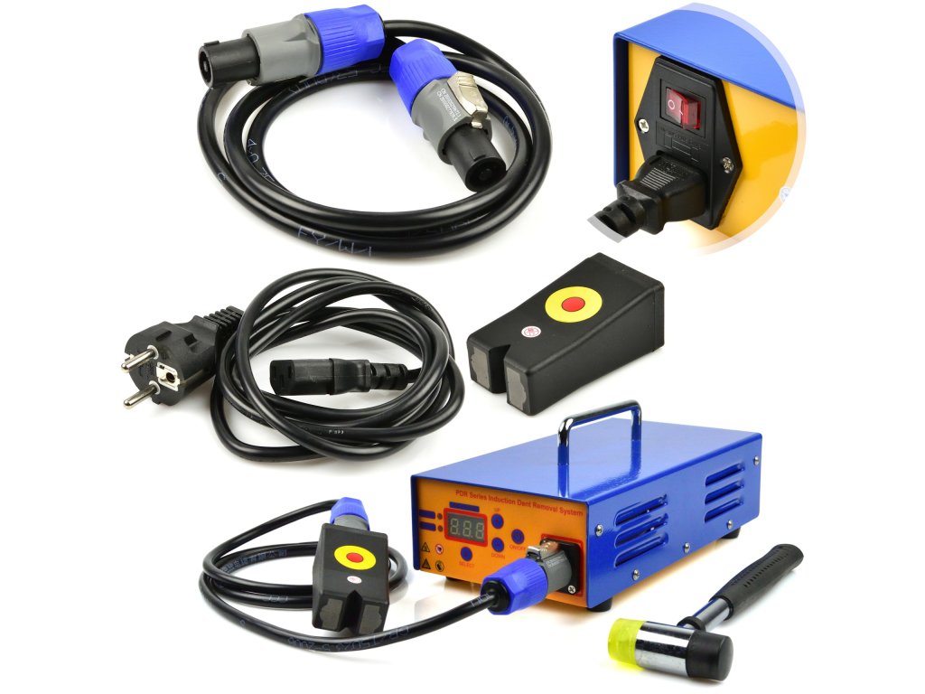 U setu se nalazi indukcijska jedinica, limarski čekić i pet različitih vrsta grijnih nastavaka, koji su izrađeni od izdržljive plastike, koja ne ogrebe lak automobila.